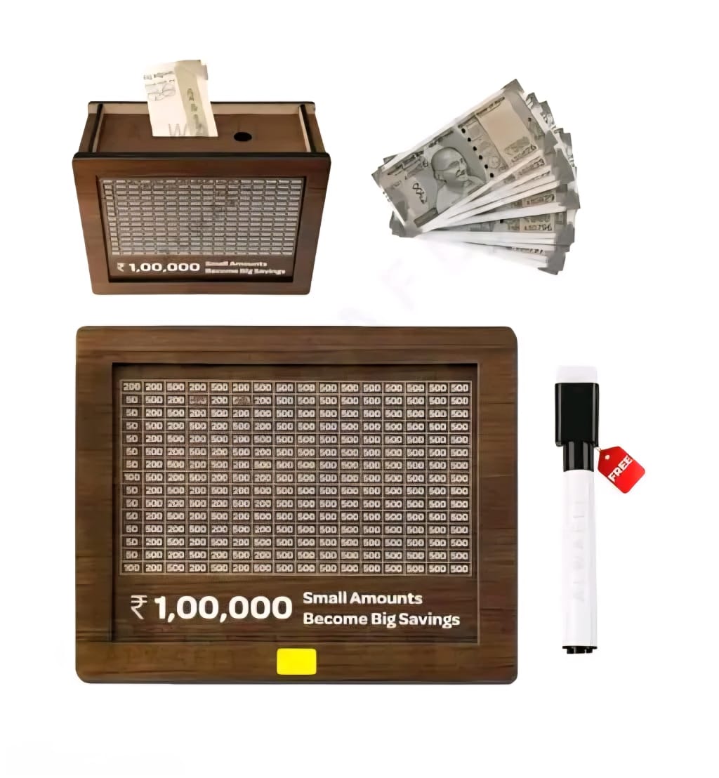 Name : 1 Lakh Wooden Money Piggy Bank for Kids/Piggy Bank, Money Box, Coin Box with Carved Design for Kids/Children, Savings Challenge Box, Cashbox ,Cash Vault Wooden Savings Box, Wooden Coin Piggy Bank, Money Save Box Smash, Money Saver